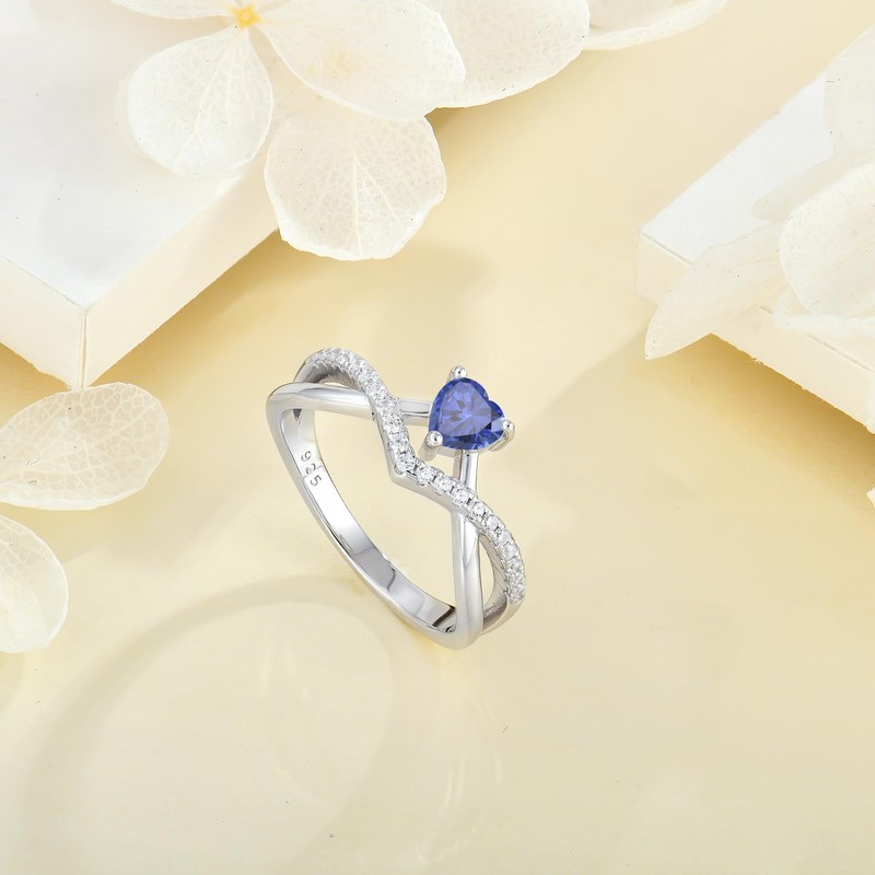 Starnny Heart Rings for Women 925 Sterling Silver Promise Ring Birthstone December - Tanzanite Ring for her,T