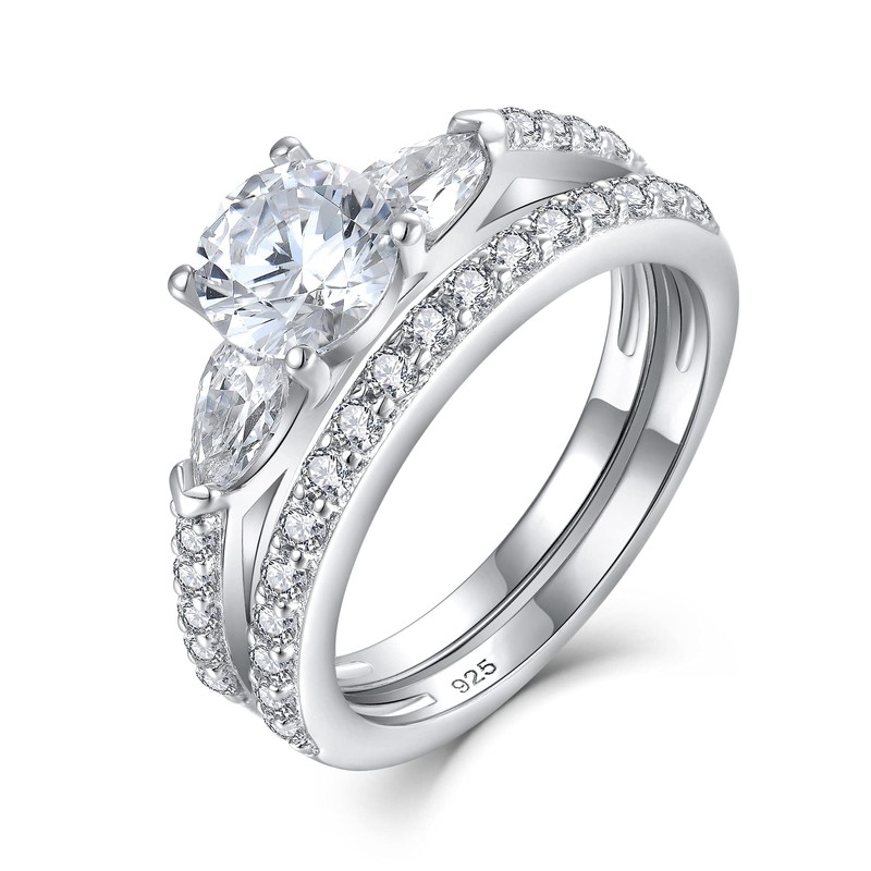 Starnny Rings Women Silver 925 Women's Rings Set Couple Engagement Ring Wedding Rings Wrap Ring 3A Zirconia Ring White Gift for Her Women, Silver, Cubic Zirconia