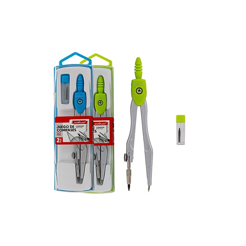 STARPLAST COMPASS SET - 4 Colours, Includes 1 Tube with Mine, Protective Box, for Office or School Use - Pack 2 Assorted