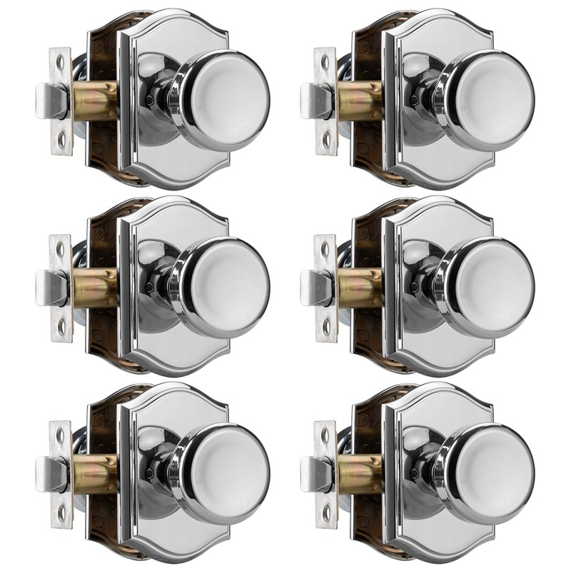STARPY 6 Pack Pismo Doorknobs with Lock for Bath & Bedroom, Polished Chrome Interior Door Knobs with Camelot Trim