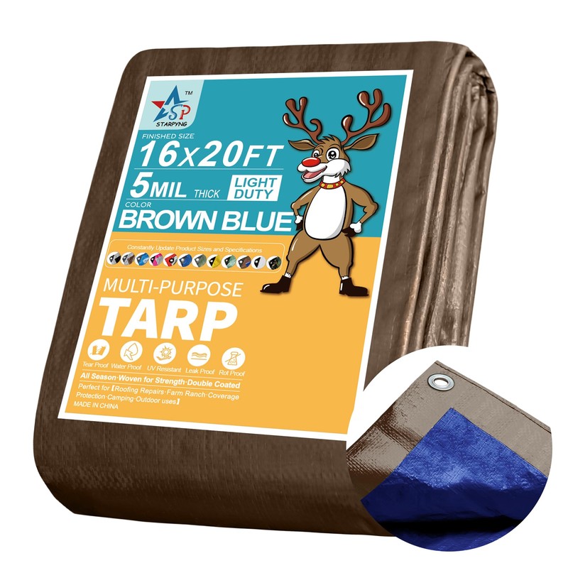STARPYNG-5 Mil Brown/Blue 16x20 Feet Tarp-LightDuty Waterproof Tarpaulin-Waterproof, UV Resistant, Rip and Tear Resistant, Poly Tarpaulin with Reinforced Edges for Cover