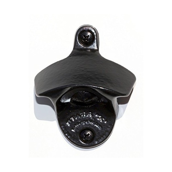 This jet black wall mounted bottle opener made from powder-coated cast iron should not be missing in your party room, kitchen or bar!