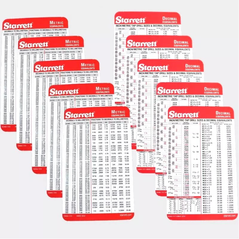Starrett 5 Sets Pocket Starrett Metric & Decimal Equivalents Chart Machinist Pocket Cards
