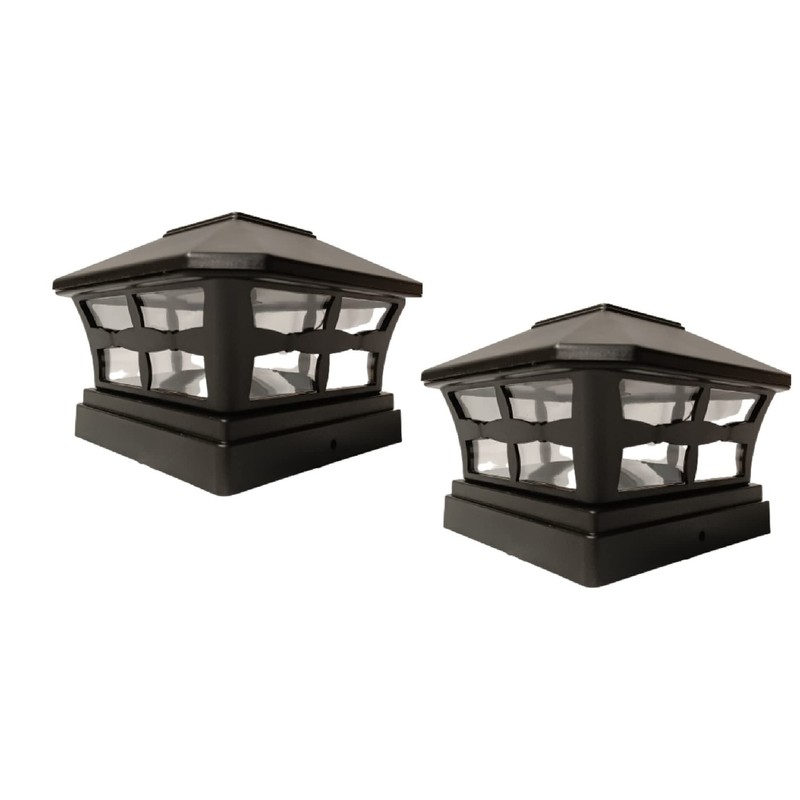 Starry Illuminate 2 Pcs Solar Black Color Square Plastic Post Fence Cap Lights 6X6 Inches 2 Bright SMD LED Bulbs