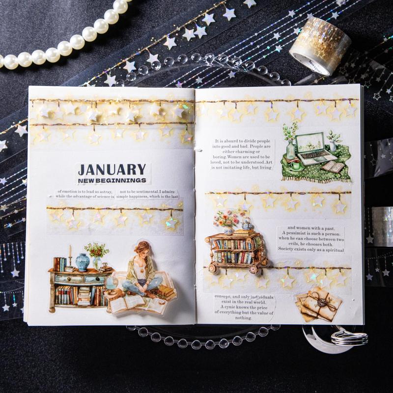 Starry Sky Themed Washi Tape, 6 Counts/set DIY Decorative Tape, Scrapbooking & Stamping Supplies for Home School Office