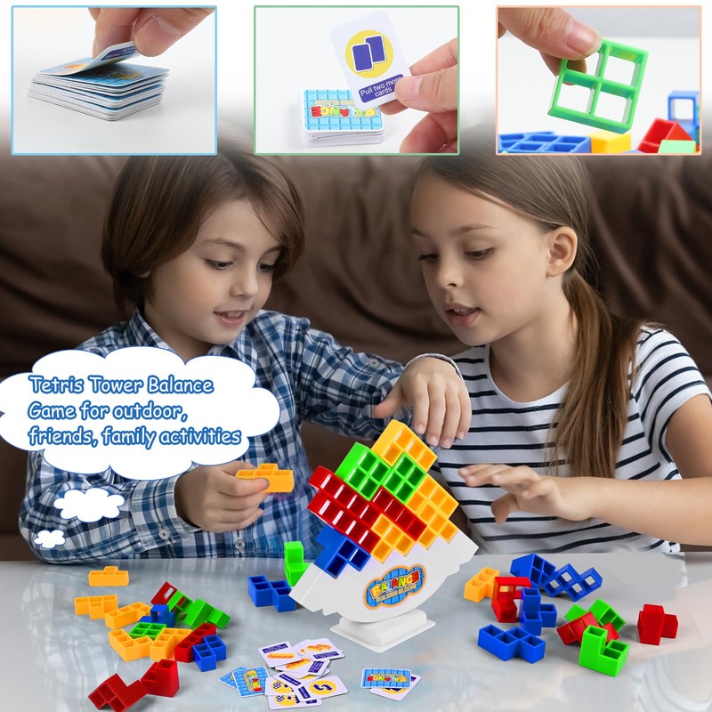 - 🎲SICHERHEITSMATERIAL: Unser Tetris-Turm-Balance-Bauspielzeug besteht aus umweltfreundlichem ABS-Material, ungiftig, geschmacksneutral, verschleißfest und sturzsicher, keine Angst vor dem Kauen der Kinder, spielen Sie in Ruhe. Die Oberfläche der Balanceblöcke ist glatt und gratfrei, bequemer zu halten.