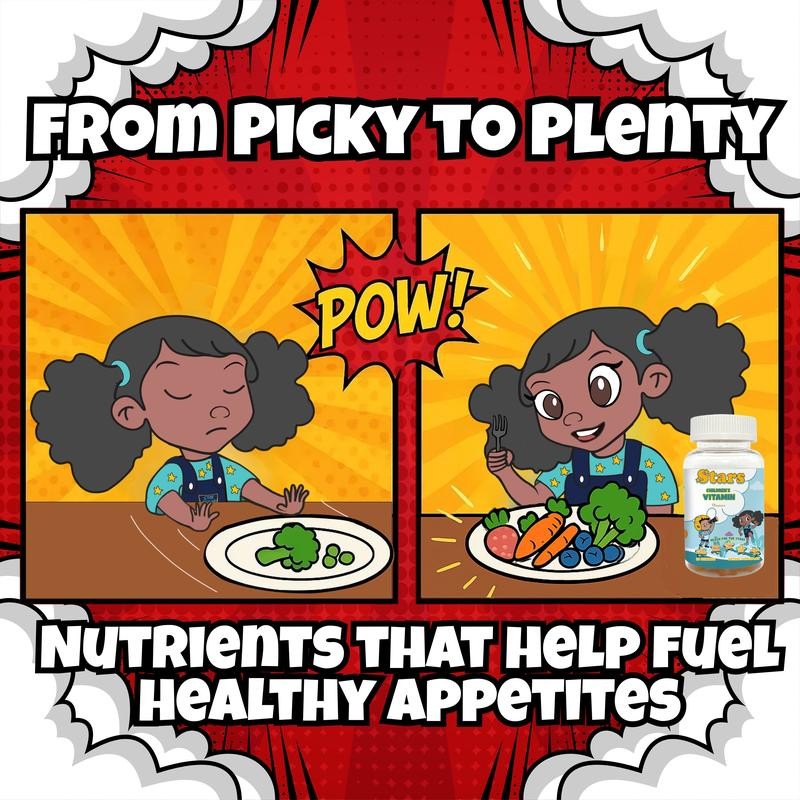 Stars Kids MultiVitamin Gummy w/ Omega 3 for Appetite Mood & Focus All Natural Gluten Free Plant Based (60 Gummies):_3 Bottles (Multi-Child Discount)