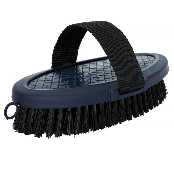 START Pferdebürste mit Band – Ergonomische Pflegebürste für Pferde – Striegel mit Riemen & weichen Borsten – Ideal für Fellpflege und Fellwechsel (Dunkelblau)