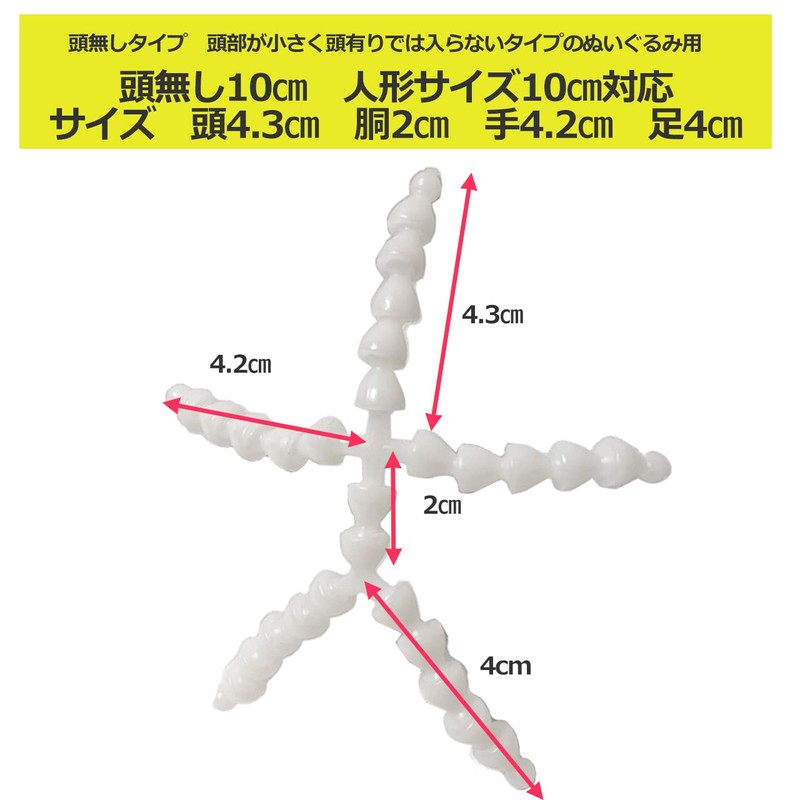 Start Side Plush, Ribbon, Processing, Full Body, Posing Fixed, Handmade, Toy Skeleton, Craft Supplies, Parts (3.9 inches (10 cm) Without Head)