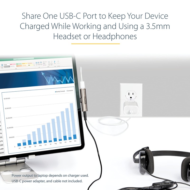 StarTech.com CDP235APDM USB Type-C Earphone Jack Converter Adapter/60W PD Simultaneous Charging/USB-C Audio Adapter/3.5mm TRRS Headphone & Headset Jack/Type-C Compatible Smartphones, Tablets, Laptops