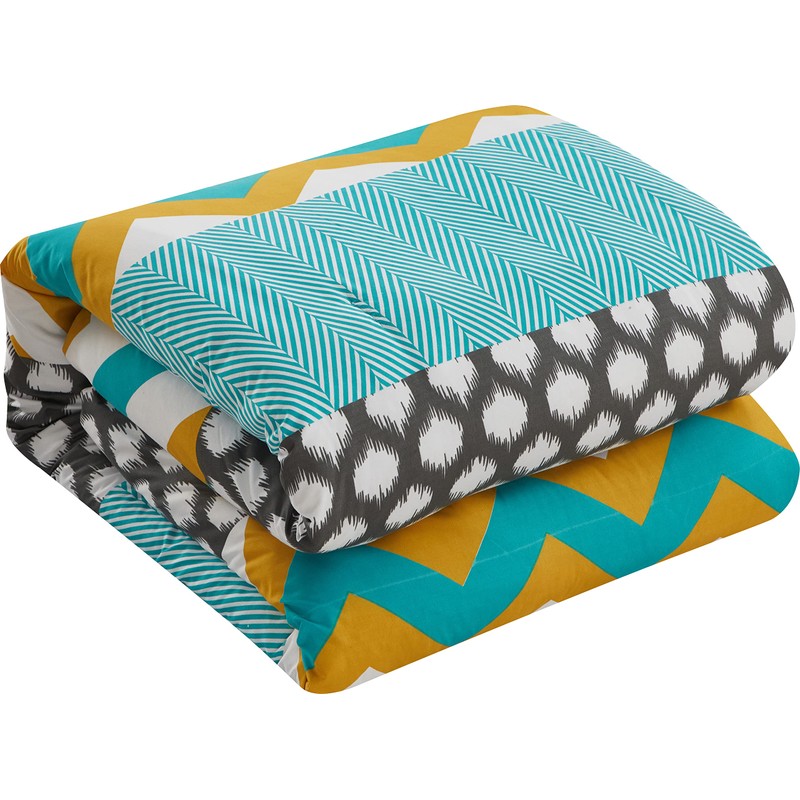 - Make a Luxurious Statement to Your Chambers. This Nolan Reversible Comforter Set Features Various Exciting Patterns on One Side and Soothing Blue Shade on the Other.