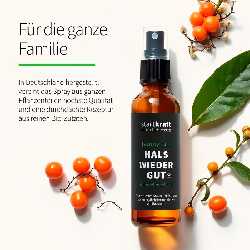 STARTKRAFT Hals wieder gut, natürliches Rachenspray aus fermentierten Wildkräutern, Halsspray mit Wirkstoffen von Acerola, Efeu, Sanddorn, Isländisch Moos, Propolis und Hagebutte