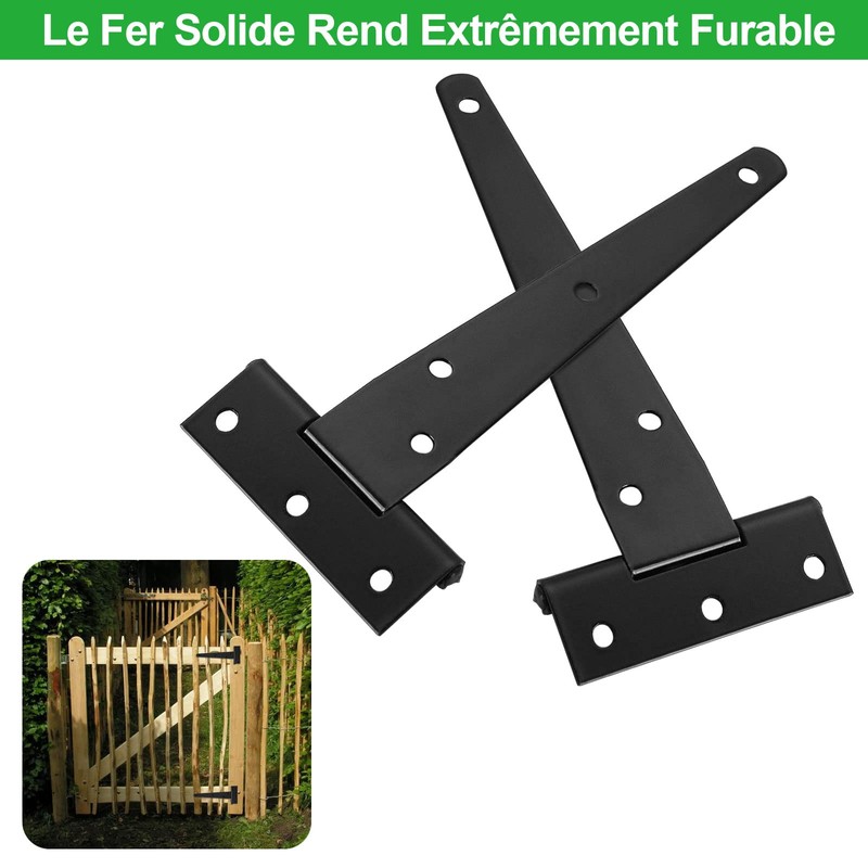 STARVAST Pack of 10 T-Hinges Heavy Duty, 6 Inches/150 mm T-shaped Hinges, Barn Door Hinges, Black Wrought Iron, Rustproof with 70 Black Screws for Gardens, Wooden Fences