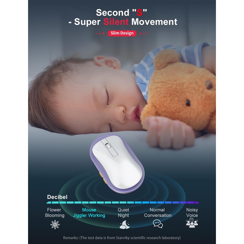 STARVIKY Mechanical Mouse Jiggler, Ultra-Slim Mouse Mover, with Adjustable Running Timer, Driver-Free Mouse Wiggler Shaker Silently(Light Purple)