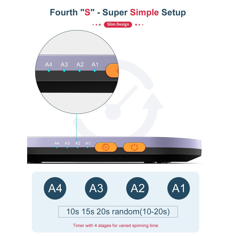 - 【Super Simple Settings】The mouse mover includes a customizable timer with 4 different stage settings (10s, 15s, 20s, and random 10-20s) for the turntable's operation. The interval between each turntable stop is consistently set at 5 seconds. Simply press the button to select your required turntable rotation time.