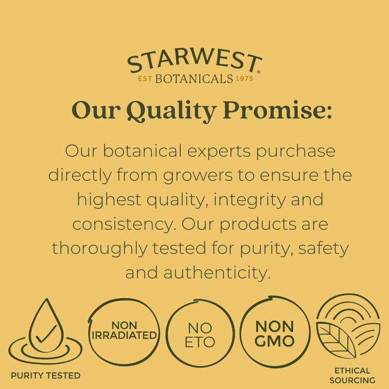 • STARWEST SUSTAINABILITY: With a commitment to responsible sourcing, Starwest Botanicals works with expert farmers across over 50 countries to provide carefully cultivated herbs, spices, and teas