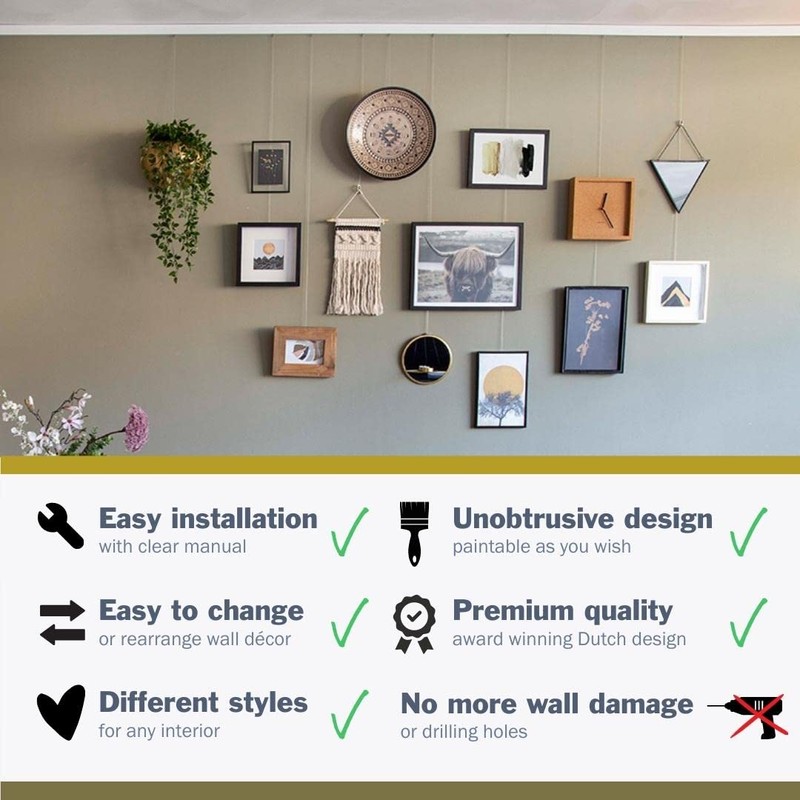 - Value pack of 4 picture hanging hooks and galvanized steel cables