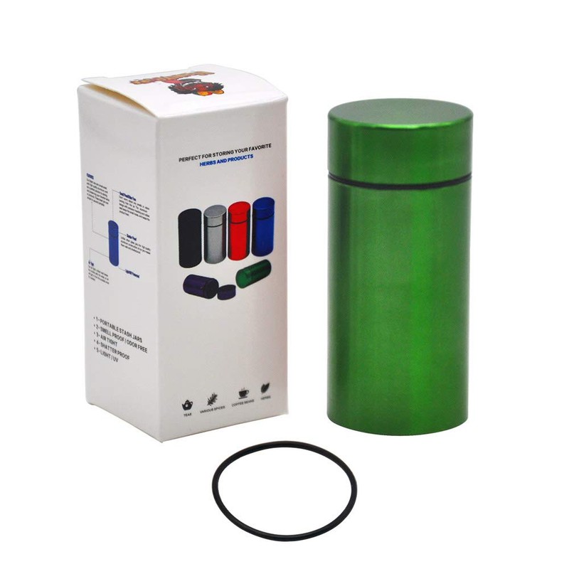 - ''' Stash Jar.Smell/Water Proof, Smell Proof Container.Airtight.Keep your herbs fresher longer.It offers optimal protection against the harmful effects of light.#||# Made of high quality aluminum.2 Solid Aircraft Grade Aluminum milled canisters will offer a shell of complete herbal protection. BIG enough to store whatever items you need but small enough for discreet travel.#||# Height: 2.91 , Width: 1.34, Depth 1.25 (inches).#||# With rubble seal ring.herb stash jar. Airtight container#||# Don't worry about any smells or odors coming from this jar.'''