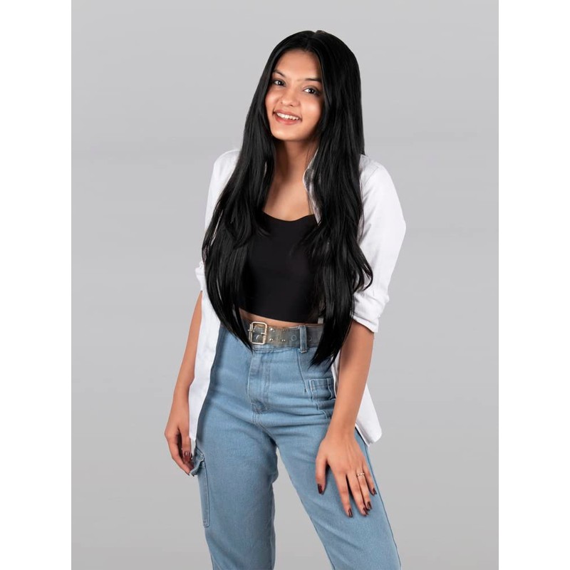 Stasia Street 24-Inch 2pcs Set Straight Clip-In Korean Synthetic Breatheable Hair Extensions for Women Natural Look Instant Volume & Length – Jet Black