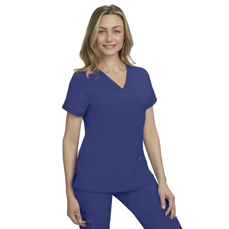 STAT MEDICAL WEAR Women Scrub Top with Mock Wrap Neck Line and 5 Pocket Drawstring Scrub Pant - 110200, XS, Navy