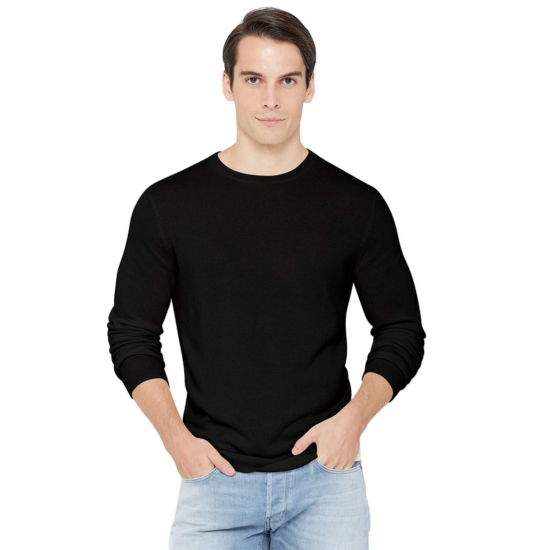 State Cashmere Men's Essential Crewneck Sweater 100% Pure Cashmere Classic Long Sleeve Pullover (Black, Medium)