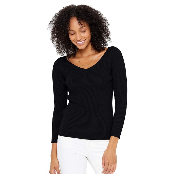 State Cashmere Women’s Easy V-Neck Ribbed Sweater 100% Pure Cashmere 3/4 Sleeve Pullover (Black, Medium)