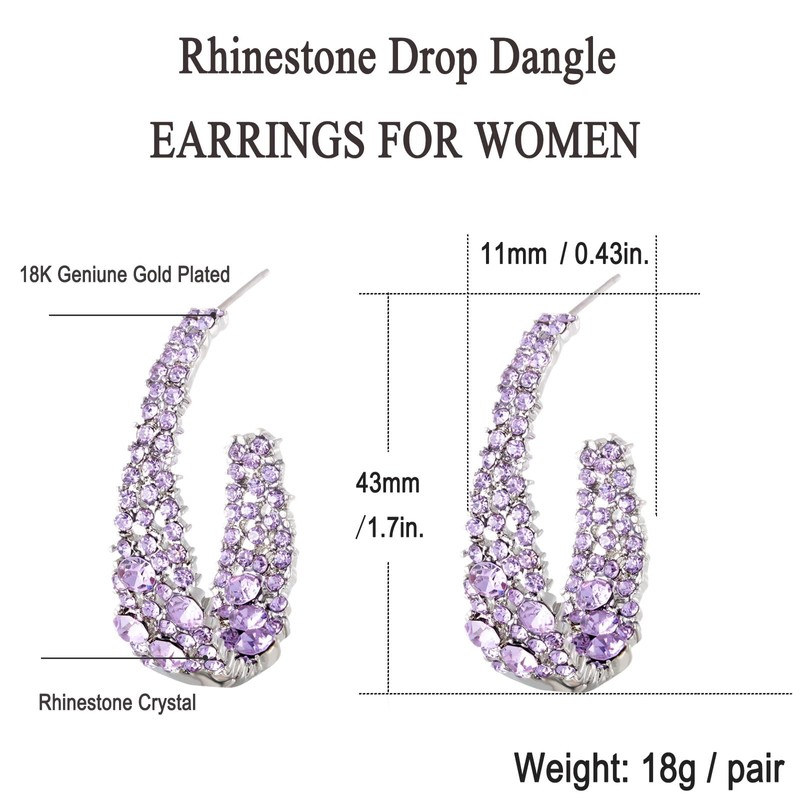 • Delicate Design- Size: 1.7"X 0.43" Weight:18g. New Version Glamorous and Sparkly Art Deco Reproduction Purple Crystal Rhinestone Statement Earrings. Alexandrite rhinestone inside out design. Round crystals tapered U shaped hoop provides maximum sparkle. Colorful large hoop dangle drop earrings for women will never be outdated and will make your eyes shine. Perfect outfit.