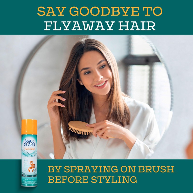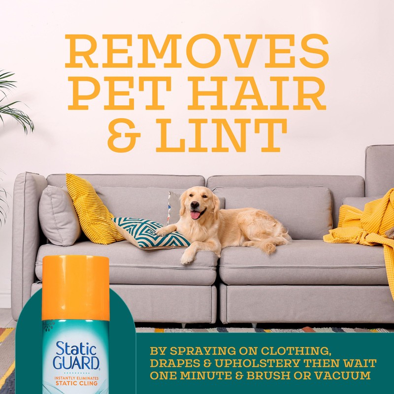 Static Guard Spray, 5.5 oz, instantly eliminates static cling. Makes it easier for you to keep your clothes separate by instantly releasing the hold that fabrics have on one another. This Static Guard spray is effective on laundry, pet hair and all sorts of other material. Spray it on your comb or brush, then run them through your hair to calm flyaways. Static Guard works mainly by neutralizing the electrical charges on surfaces, and also by attracting humidity from the air to lower the imbalance of positive and negative electrical charges that cause static cling and static shock. Static Guard is America's #1 anti-static spray. Our static cling spray lasts all day so you never have to be caught in an embarrassing clingy spot or shocking situation again!