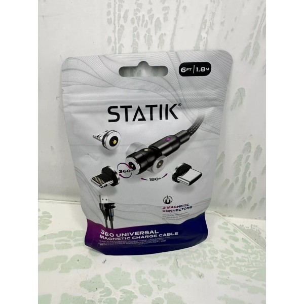 Introducing the Statik 360 Magnetic Charging Cable - the perfect accessory for your cell phone! This 3-in-1 smart rotating charger comes with a 6ft braided nylon cable that is both durable and flexible. With its USB-C connectivity, this cable is compatible with a wide range of devices and has a fast charge feature that ensures your phone is charged up in no time.