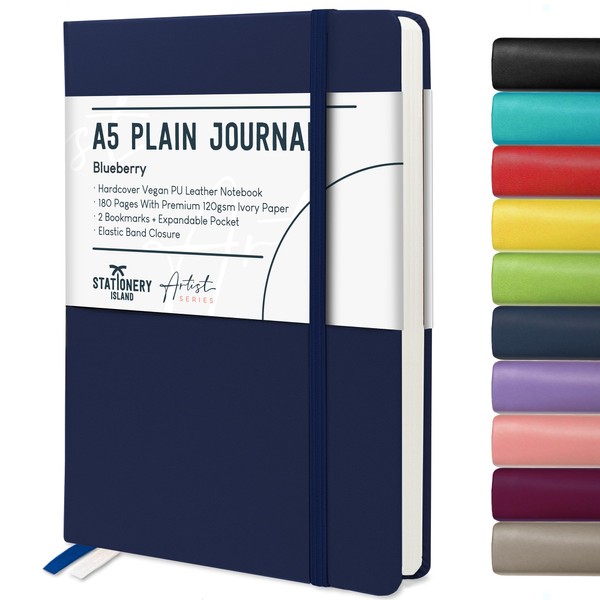 STATIONERY ISLAND A5 Unlined Notebook,Plain Note book Hardcover with 120gsm Premium Thick Paper, 180 Pages Hardback Blank Journal for Writing, Working, Study, Blueberry