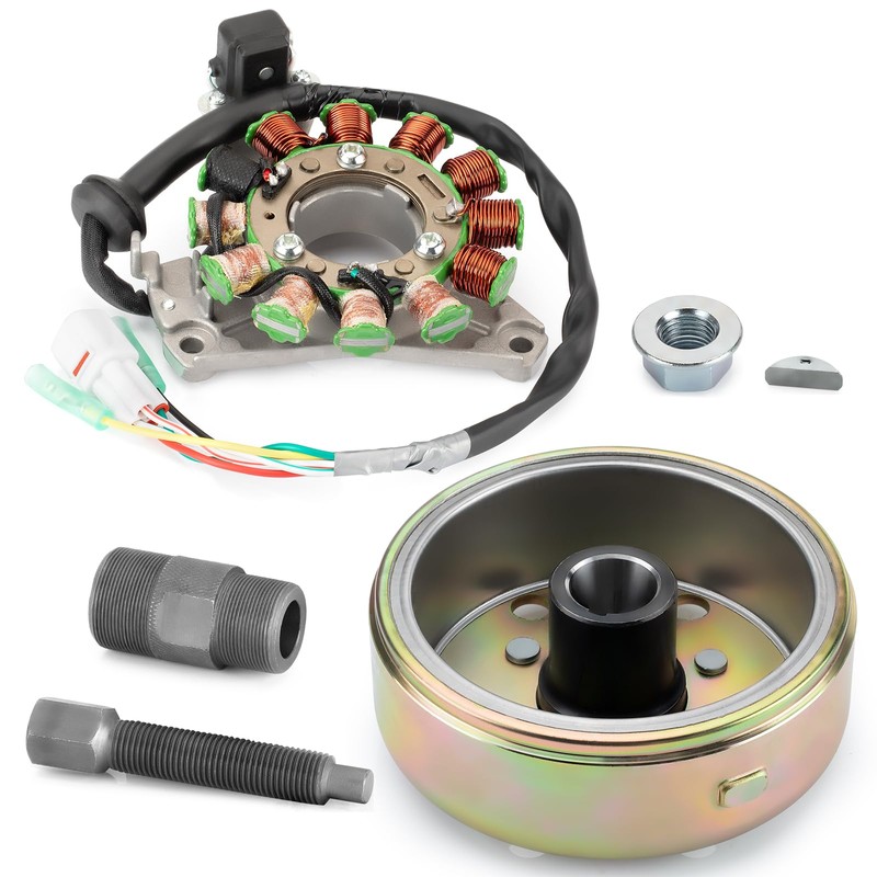 - PACKAGING: Unbox convenience and reliability with our packaging, featuring 1x Flywheel, 1x Flywheel, 1x Flywheel puller, 1x Nut, 1x Woodruff Key, and 1x Stator. Each component is meticulously selected and packaged for effortless installation, saving you time and hassle.