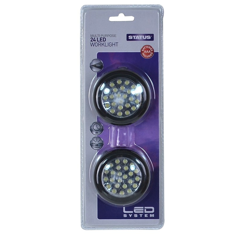 STATUS Worklight Torch | 24 LED Round Torch | Built in Magnet and Hook | Black Pack of 2 | S24LEDRWLWB2PK4