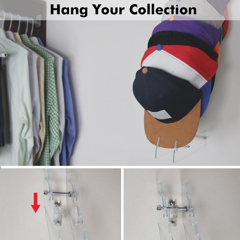 STAUBER Best Acrylic Baseball Cap Rack - The Original Multipurpose Hat Display Organizer - Made in the USA! (Clear, 2 Pack)