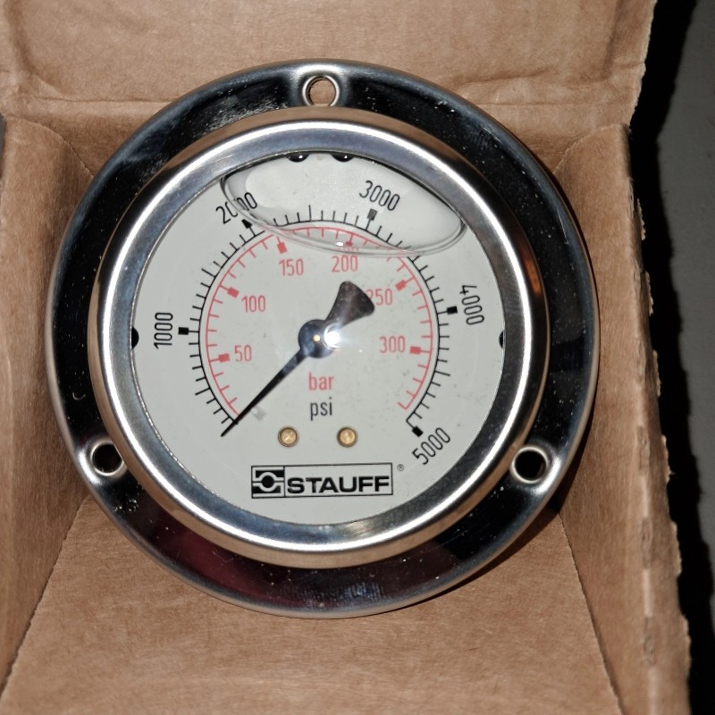 stauff 2.5" 63mm Liquid Filled Pressure Gauge 0-5000 PSI 4an 1/4 JIC Panel Flush Mount