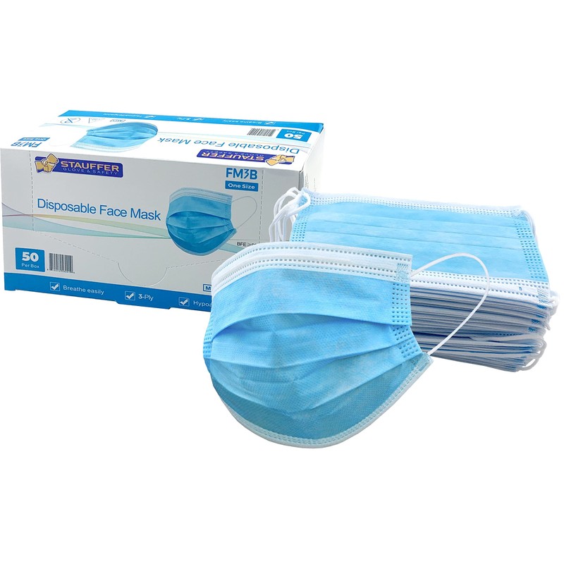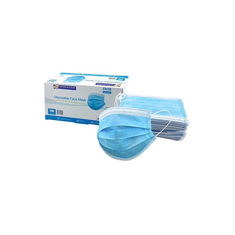 Stauffer Disposable Face Mask, ASTM Level 2 Rating, 3-Ply Lightweight and Breathable (Box of 50)