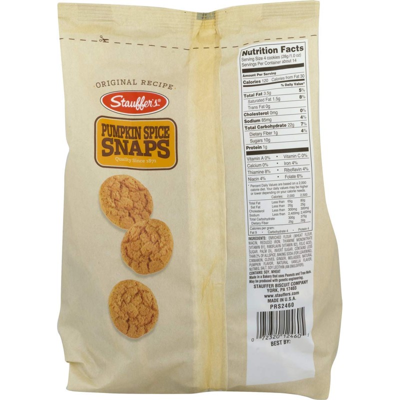 - You Will Receive 14 oz.Bags of Stauffer's Snaps- Your Choice of Apple Pie or Pumpkin Spice