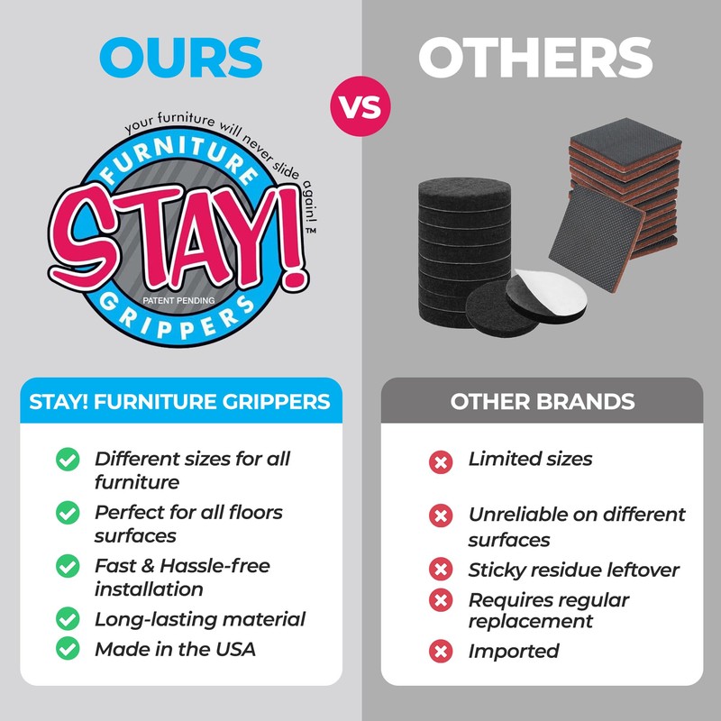 - OPTIMAL PROTECTION: Proudly made in the USA, our Stay! pads to keep furniture from sliding shield your floors from scratches, dents, and paint stains, keeping your floors and furniture flawless