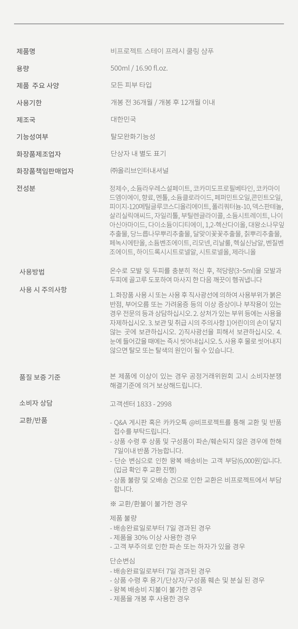 스테이 프레시 쿨링 샴푸 500ml (두피케어)