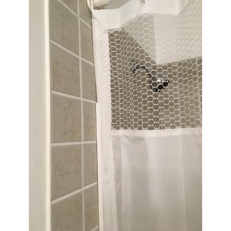 - The water resistance treated polyester fabric will last for years. The curtain with the mesh across the top is ideal to allow increase ventilation and lighting into the shower unit.
