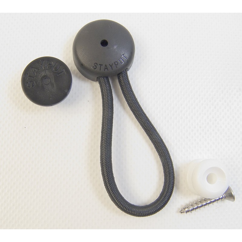 StayPut Bungee/Shock Cord Fastener, Black w/White Surface Attachment Knob & Mounting Screw (15)
