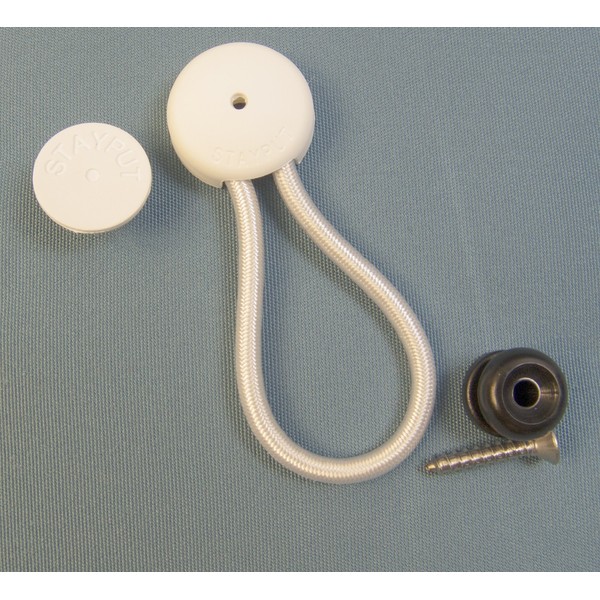StayPut Bungee/Shock Cord Fastener, White w/Black Surface Attachment Knob & Mounting Screw (1)