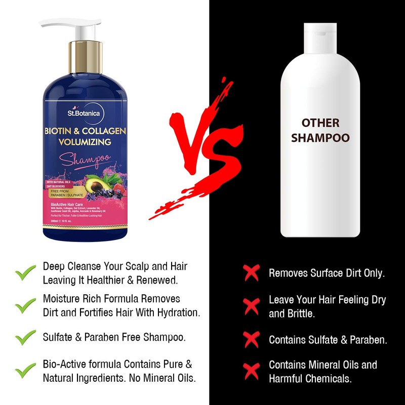 StBotanica Biotin & Collagen Volumizing Hair Shampoo - 300ml - No Sulphate, No Parabens, No Silicon