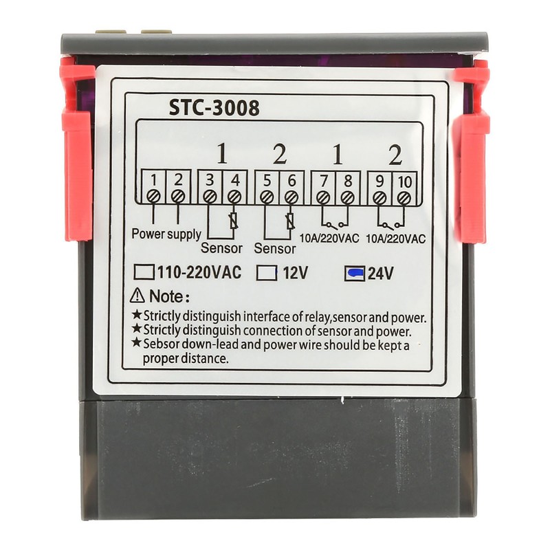 STC-3008 Dual Display Dual NTC Probe Sensor Digital Temperature Thermostat Controller (DC24V)
