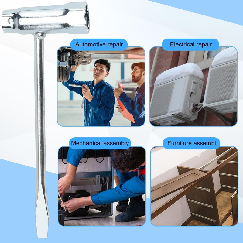 - 【Innovative 2-in-1 Design】This socket wrench can not only be used as a socket wrench, but also can be converted into a flat-head screwdriver. Its versatility allows you to avoid frequent tool changes and improve your work efficiency. The long handle design greatly reduces the user's effort, making the operation more comfortable and efficient.