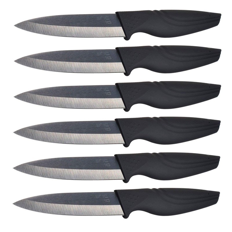NANO ID Steak Knives Set of 6 Extremely Sharp Kitchen Ceramic Black Blade Knife