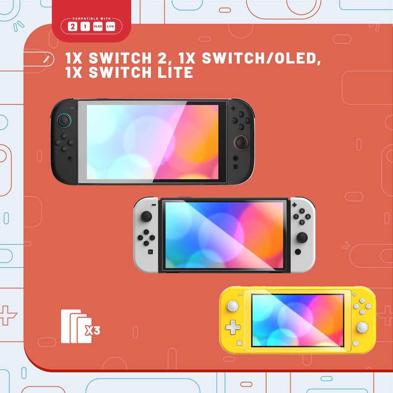 - 1X Switch 2, 1x Switch/OLED, 1x Switch Lite screen protectors