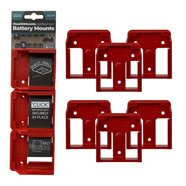 StealthMounts Battery Holder Compatible with Makita 18V (6 Pack) - Red | StealthMounts Battery Mounts | Made in the UK