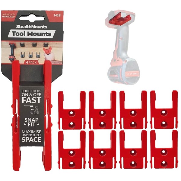 StealthMounts Tool Holder Compatible with Milwaukee M18 (8 Pack) - Red | StealthMounts Locking Tool Mounts | Made in the UK