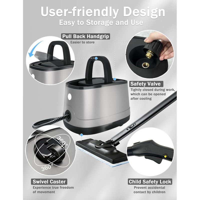 Steam Cleaner for Home, Xyloset Powerful Multipurpose Portable Steamer for Floors, Cars,Tiles, Home Use, 5 Mins Quick Heating, 1.5L Capacity, 20 Acc., Heavy Duty Steam Cleaner Carpet and Upholstery