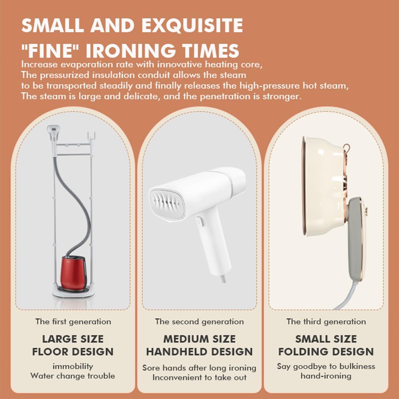 - Convenient & Comfortable - Foldable handle of this compact garment steamer iron makes it incredibly convenient for storage. And hand held steamer is capable of both flat ironing and hanging ironing. With only 6.89 inches and 1.65 pounds of the longest side, it is comfy to hold and use. You won't feel tired or sore while ironing clothes for a long time with this portable steamer for clothes .